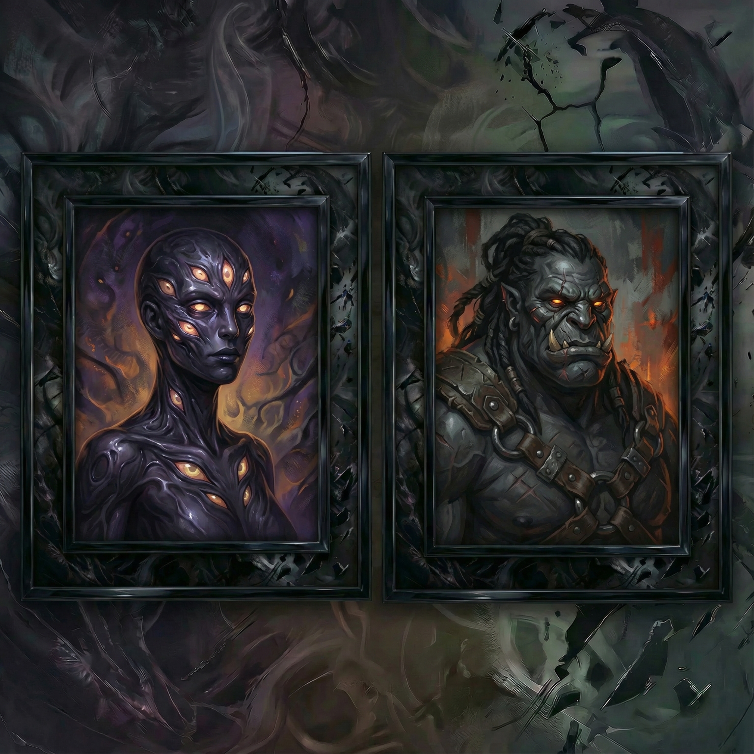| Tags | ai-assisted-art, bestiary-art, dark-concept-art, dark-fantasy-art, framed-fantasy, horror-fantasy, monster-portraits, npc-villains, rpg-monsters, worldbuilding-assets |