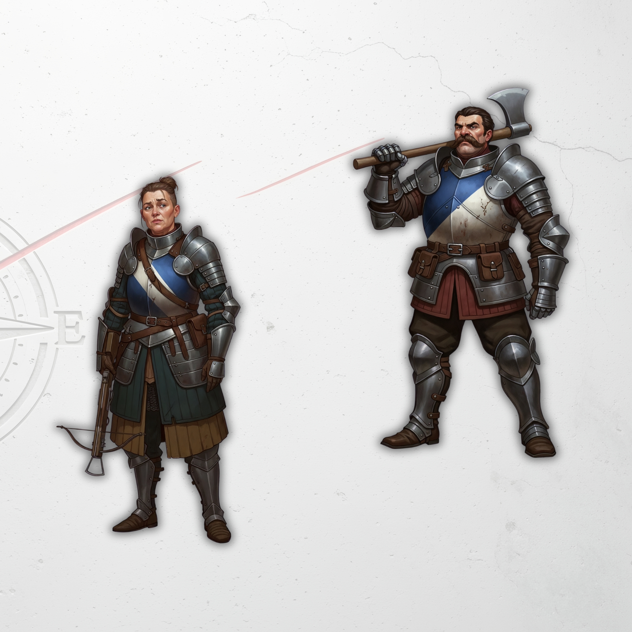 Each volume brings its own theme and personality: 🛡 Vol. 1 – Guardians and Garrisons — duty and defense ⚙️ Vol. 2 – Crafts and Commerce — work and wisdom ⚔️ Vol. 3 – Bandits and Outlaws — rebellion and chaos 🕯 Vol. 4 – Informants and Spies — secrets and intrigue