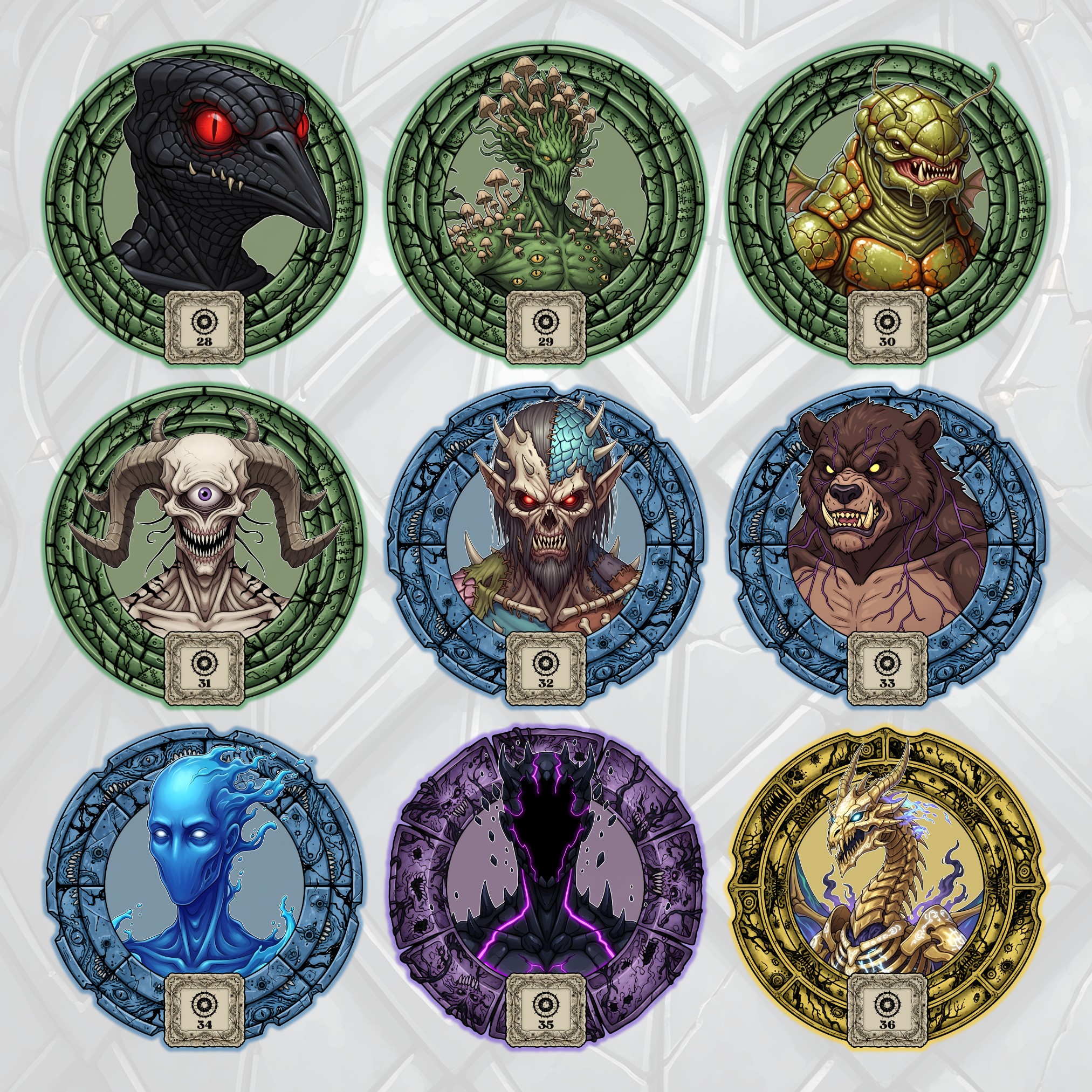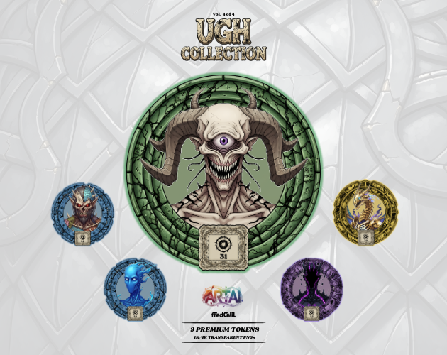 The final volume of the Ugh Collection arrives with nine legendary entities of elemental ruin and rebirth. Dragons of bone, shadow titans and shapeless gods — each token crafted in 1K and 4K PNG for your tabletop worlds.